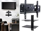 Top Wish List 2xhome - NEW TV Wall Mount Bracket (Single Arm) & Two (2) Double Shelf Package - Secure Cantilever LED LCD Plasma Smart 3D WiFi Flat Panel Screen Monitor Moniter Display Large Displays - Long Swing Out Single Arm Extending in USA